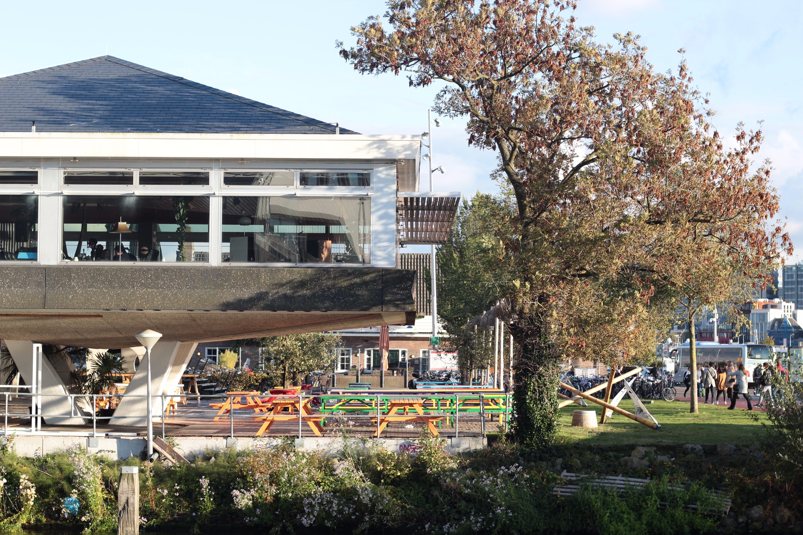 With all this adventure and exploring an alternative Amsterdam, we also had to make sure we ate well. Our first food stop was Cafe De Ceuvel. De Ceuvel is an award-winning, sustainable planned workplace for creative and social enterprises. It’s based on a former shipyard next to the Johan van Hasselt kanaal off the river IJ in Amsterdam Noord and it is stunning!