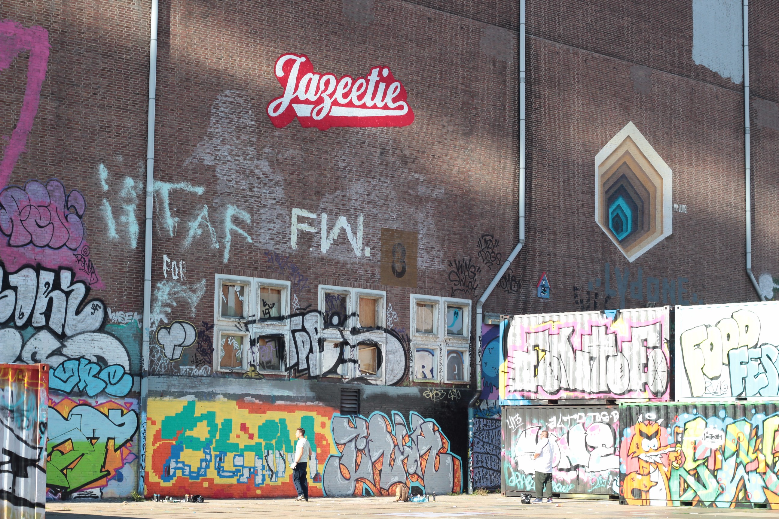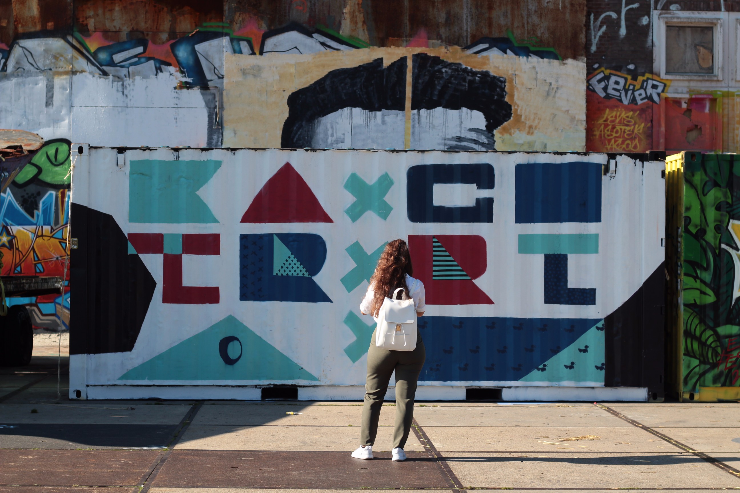 Restaurants, bars, terraces, a skatepark, new and old architecture, it has something for everyone. We headed inside the huge warehouse where they used to fix the ships. A Barbie peep show and some stunning hand-painted murals were inside. Outside the warehouse, you can spot graffiti in the making and my favourite piece of street art to date, this stunning, colourful image of Anne Frank. What a tribute!